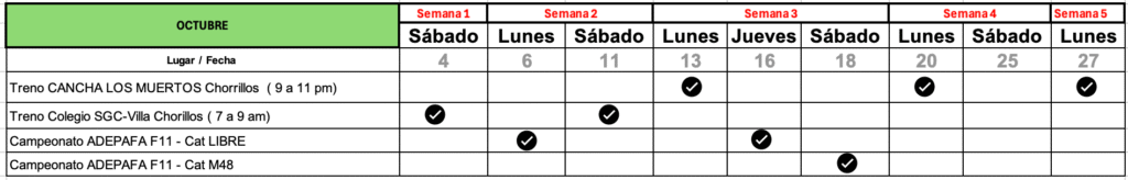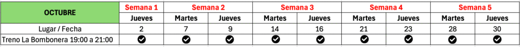 Lunes : 21:00 a 23:00 en : Estadio Cancha de los Muertos